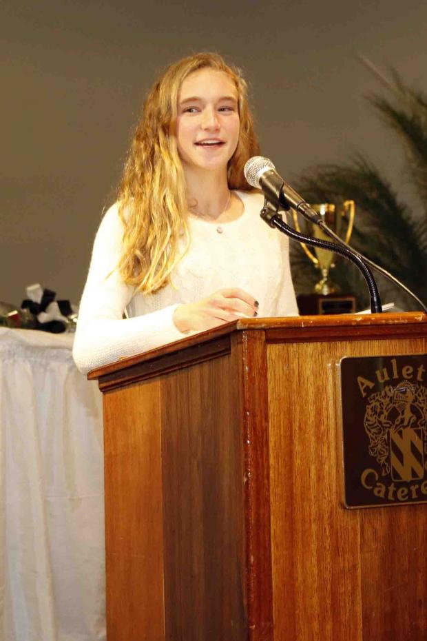 Photo of Alyssa Aldridge accepting her SJ Athlete of the Year Award by RunningWorksPics