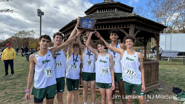 Led by individual champion Owen James (16:00), Ridge put all five scoring runners ahead of Westfield's No. 1 runner, and the Red Devils flexed their tight pack with an eye-popping 1-5 compression of just 39 seconds, and they averaged 16:24.