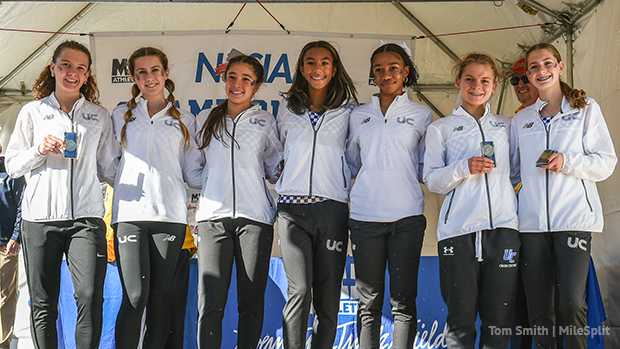 UC's Fab Five scores were Sheppard, UPenn-bound Courtney Kaiser, fourth in 18:17, Duke-bound Peyton Hollis, eighth in 18:41, freshman Cayleigh Kaiser, 15th in 19:06, and freshman Kayla Devine, ninth in 19:09. UC showed its superior depth as its sixth and seventh runners, sophomores Ella Solorzano (29th and 19:34, and Emmy O'Hearn (43rd in 19:54) both finished ahead of the No. 2 runner for Middletown South.