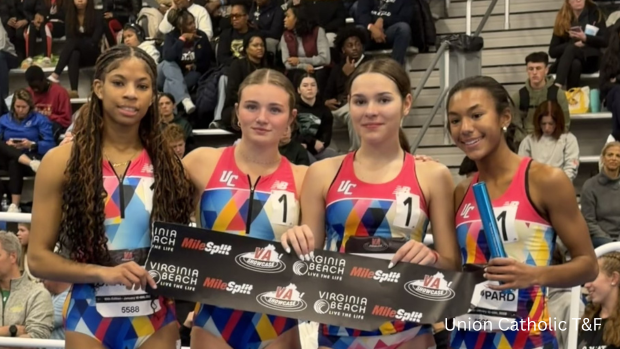 The Union Catholic girls blitzed the field and obliterated the New Jersey record when they threw down the second fastest time in U.S. high school indoor history in the distance medley relay at the VA Showcase on Friday night at the Virginia Beach Sports Center in Virginia.